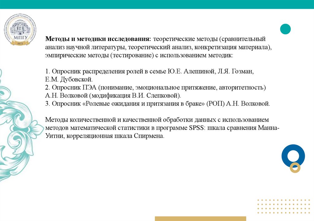 Методы и методики исследования: теоретические методы (сравнительныйанализ научной литературы, теоретический анализ, конкретизация материала),
