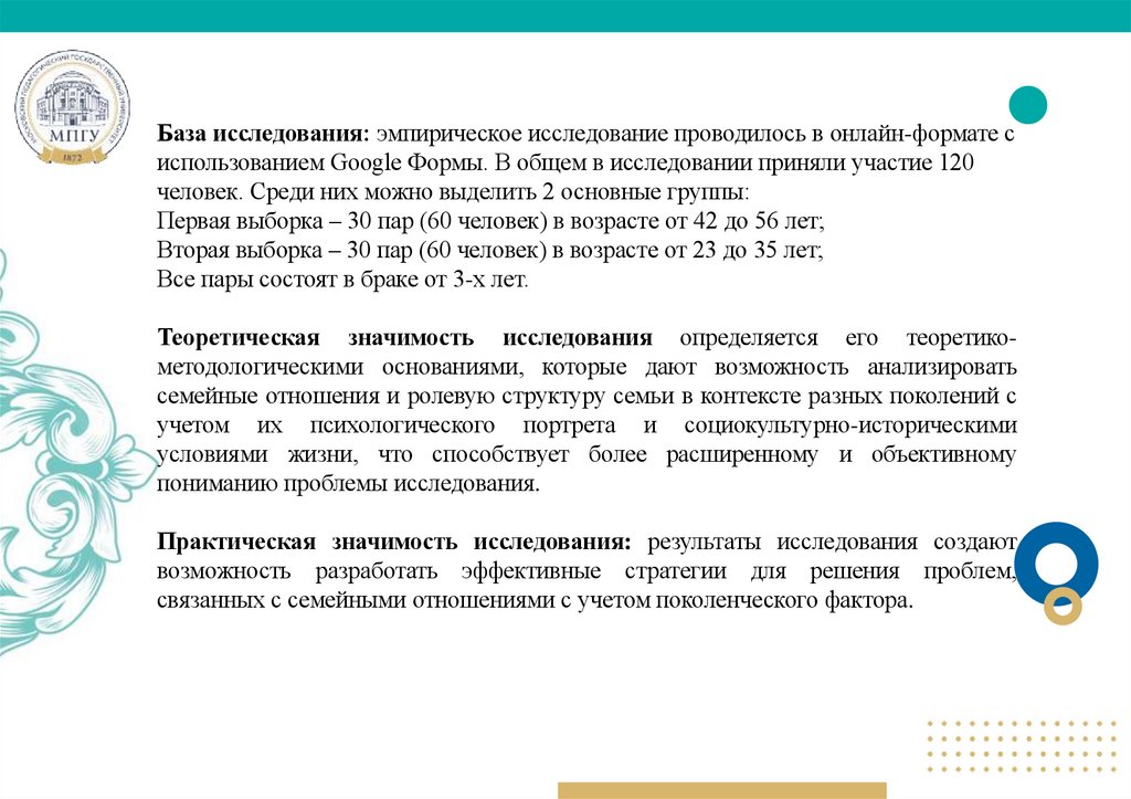 База исследования: эмпирическое исследование проводилось в онлайн-формате сиспользованием Google Формы. В общем в исследовании приняли участие 120