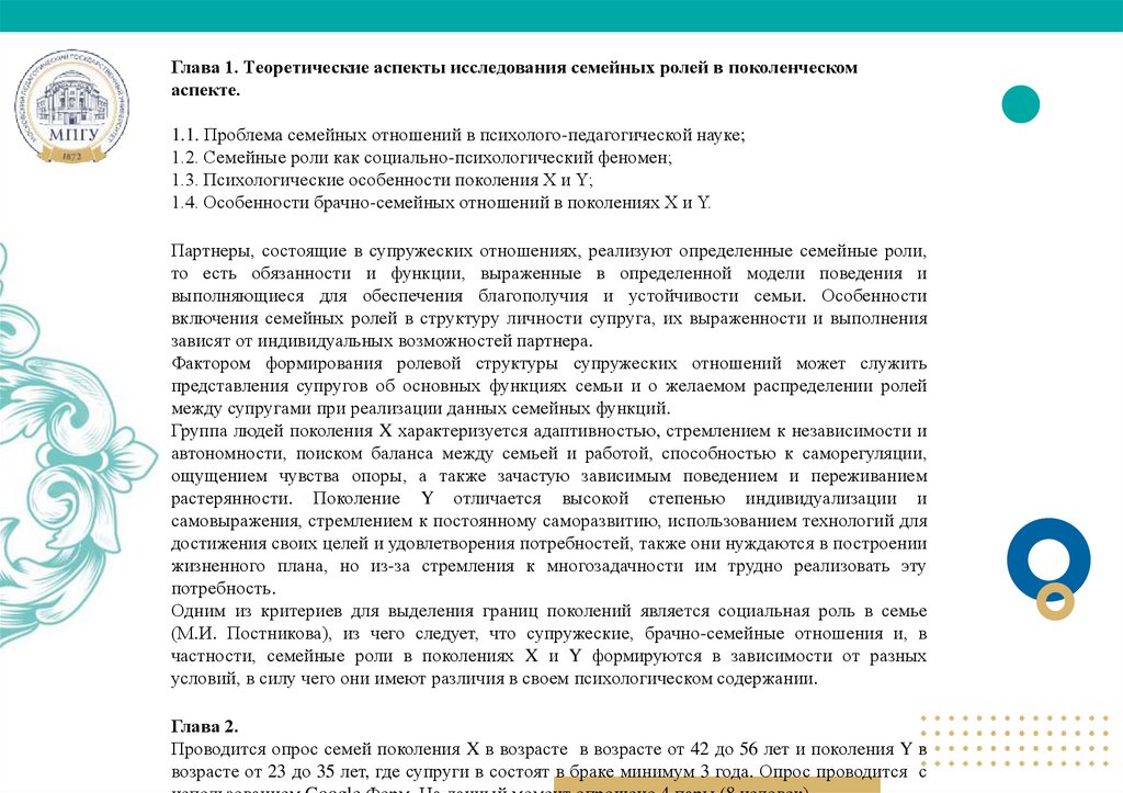 Специфика семейных ролей в поколенческом аспекте. Выпускная квалификационная работа (магистерская)