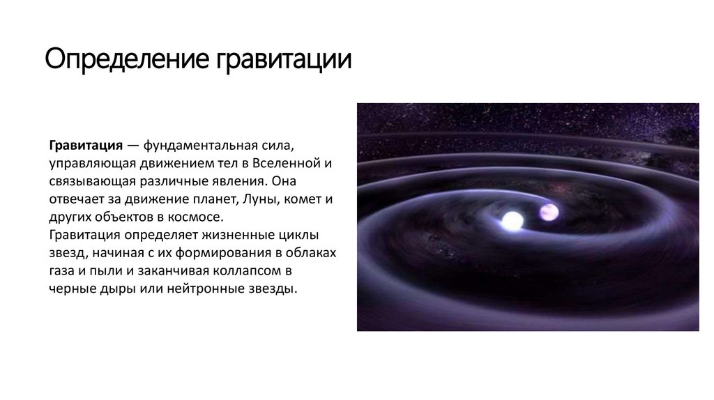 Определение гравитацииГравитация — фундаментальная сила,