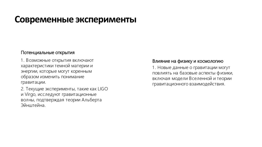 2. Текущие эксперименты, такие как LIGO