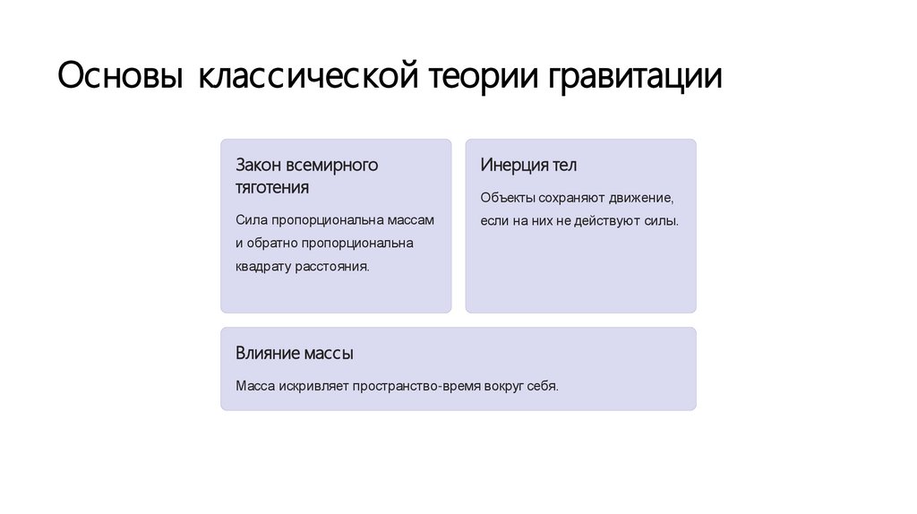 Классическая теория гравитации. Загадки гравитации - основной силы вселенной
