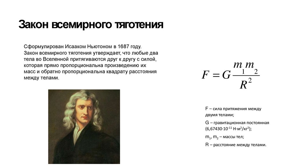 Закон всемирного тяготенияСформулирован Исааком Ньютоном в 1687 году.