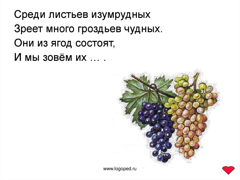 Среди листьев изумрудныхЗреет много гроздьев чудных.