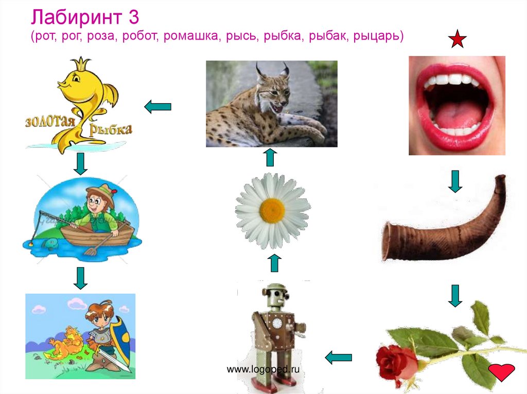 Лабиринт 3(рот, рог, роза, робот, ромашка, рысь, рыбка, рыбак, рыцарь)