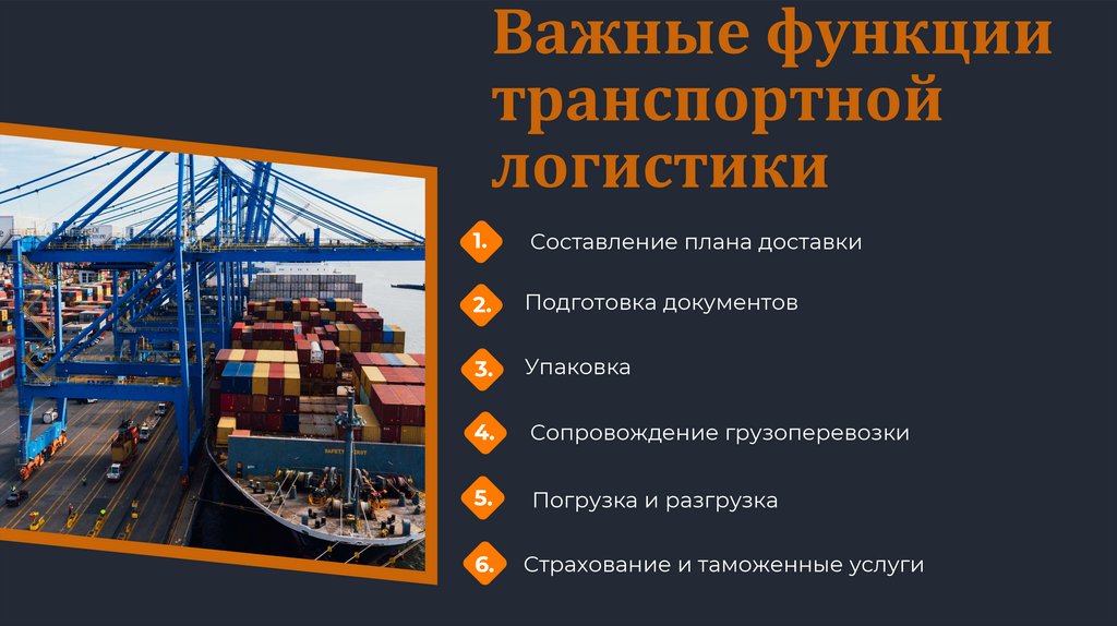 Структура транспортной логистикиТранспортная логистика включает несколько важных
