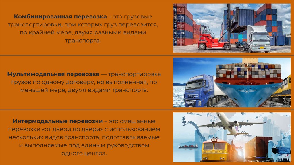 Комбинированная перевозка – это грузовыетранспортировки, при которых груз перевозится,