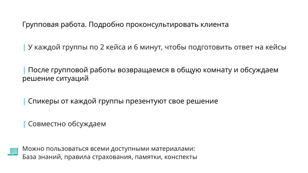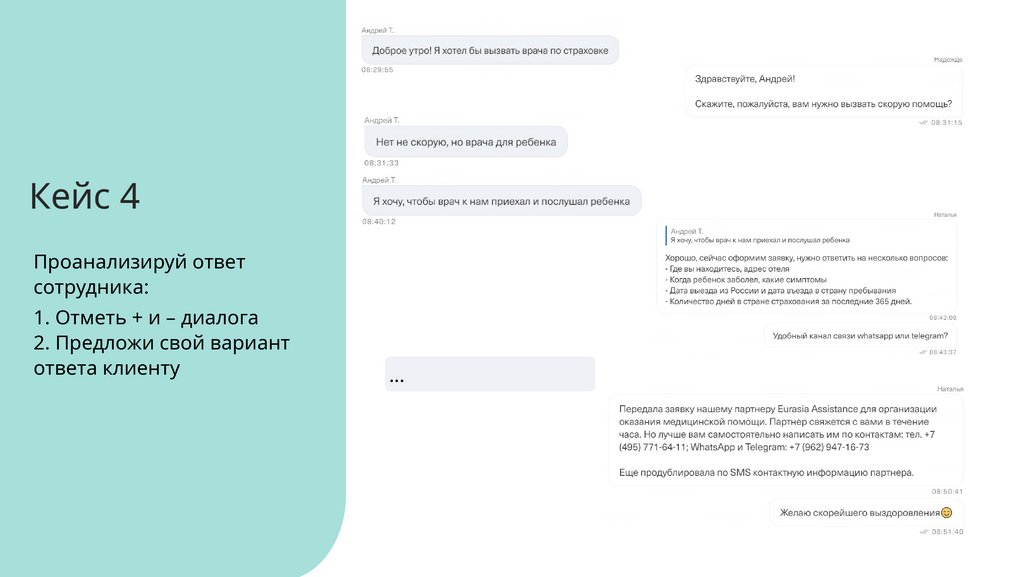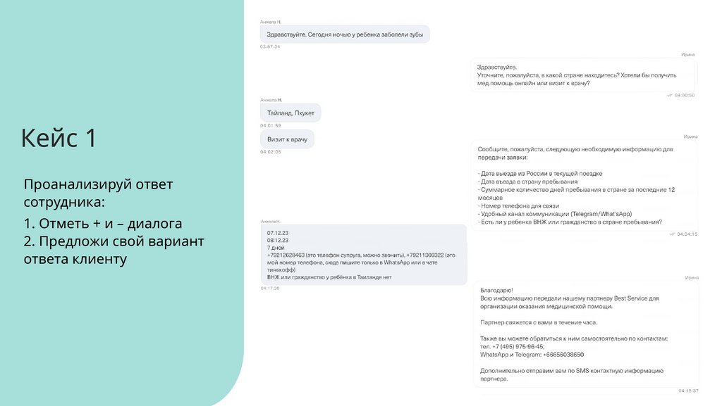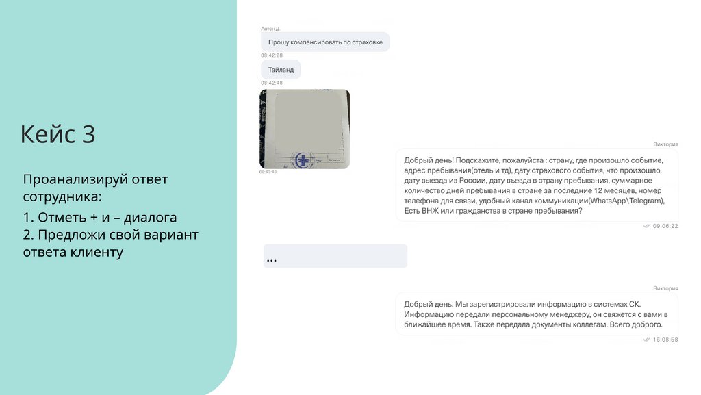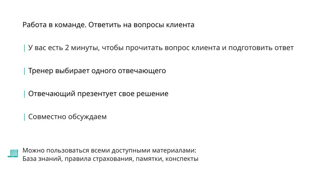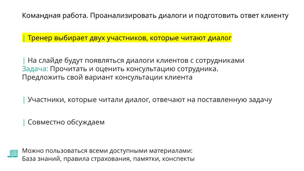 Командная работа. Проанализировать диалоги и подготовить ответ клиенту| Тренер выбирает двух участников, которые читают диалог