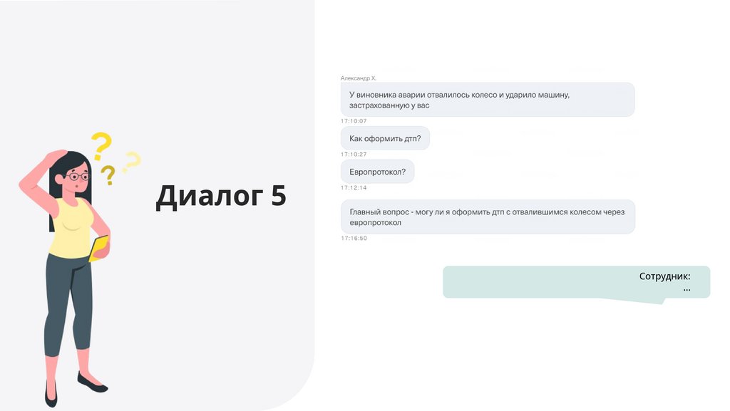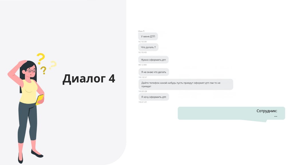 | На слайде будут появляться диалоги клиентов с сотрудниками
