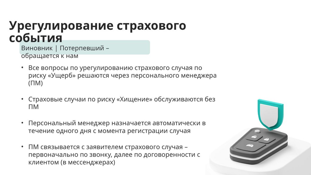 Все вопросы по процессу рассмотрения и урегулирования страхового случая решает