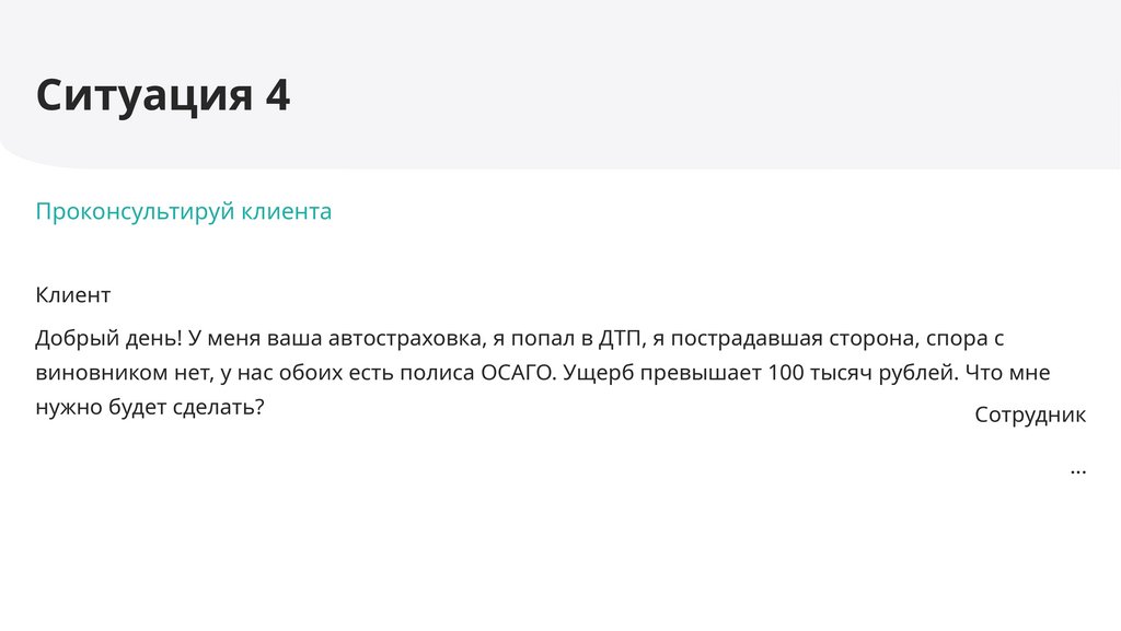 Предложи варианты, как мы можем успокоить клиента в ситуации ДТП