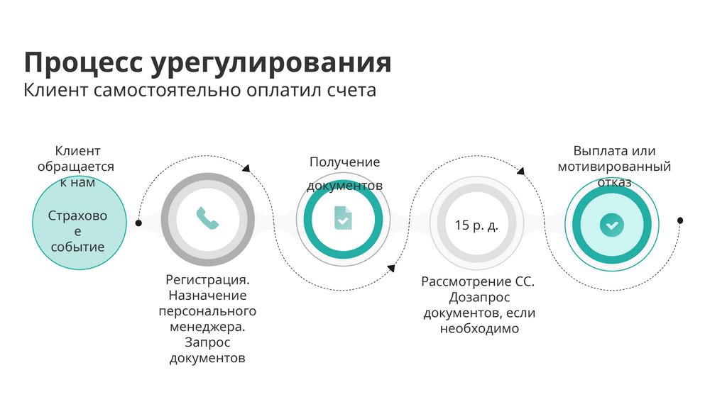 Процесс урегулированияКлиент самостоятельно оплатил счета