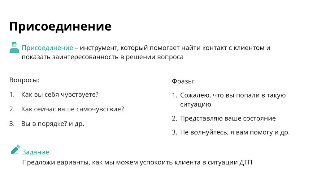 ПрисоединениеПрисоединение – инструмент, который помогает найти контакт с клиентом и