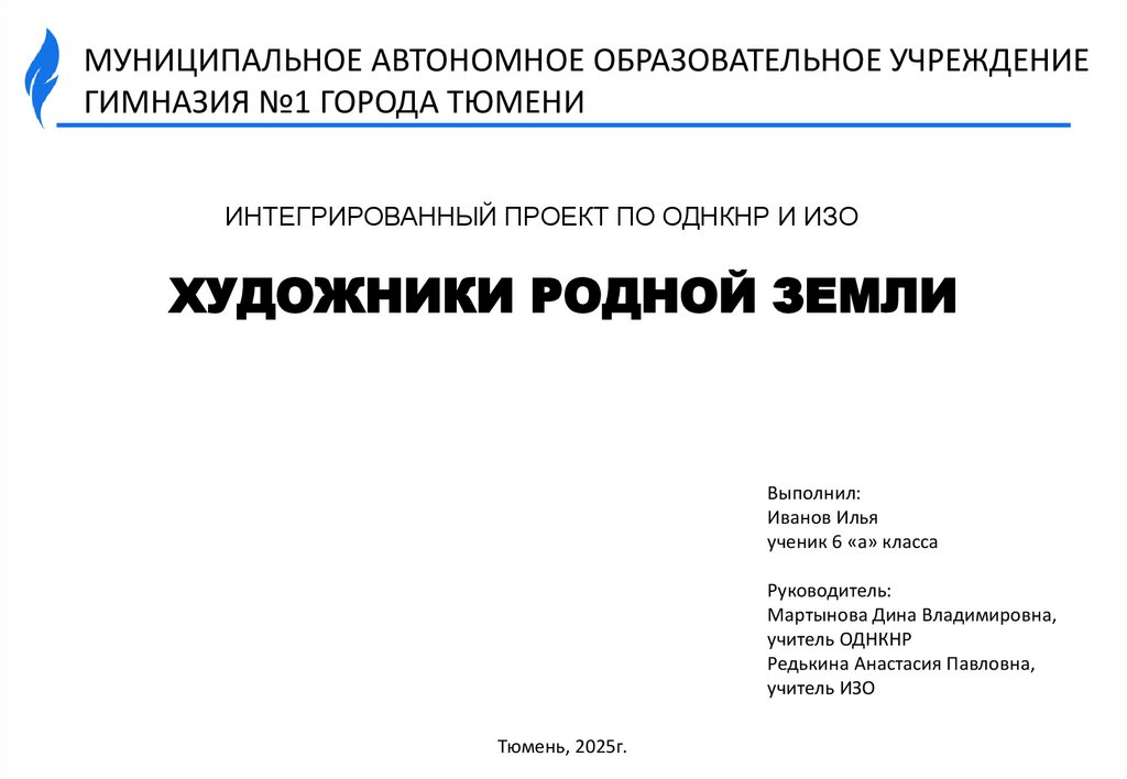 МУНИЦИПАЛЬНОЕ АВТОНОМНОЕ ОБРАЗОВАТЕЛЬНОЕ УЧРЕЖДЕНИЕГИМНАЗИЯ №1 ГОРОДА ТЮМЕНИ