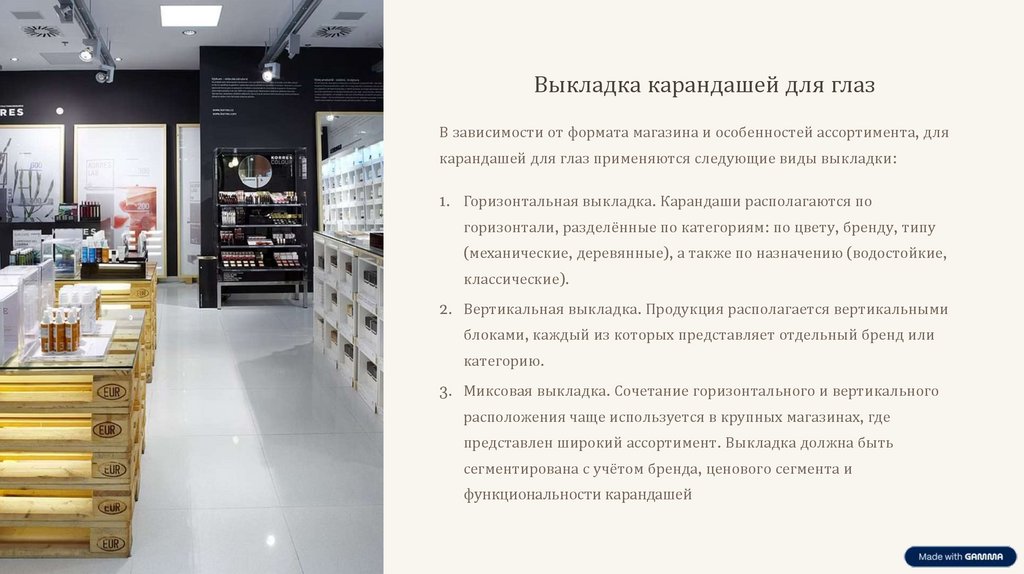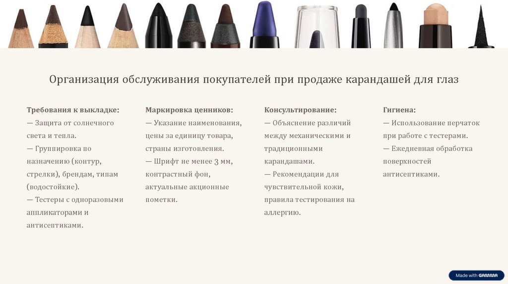 Организация обслуживания покупателей при продаже карандашей для глазТребования к выкладке: