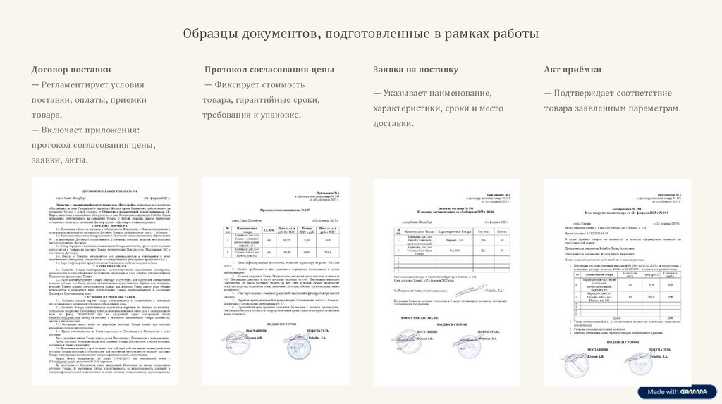 Образцы документов, подготовленные в рамках работыДоговор поставки