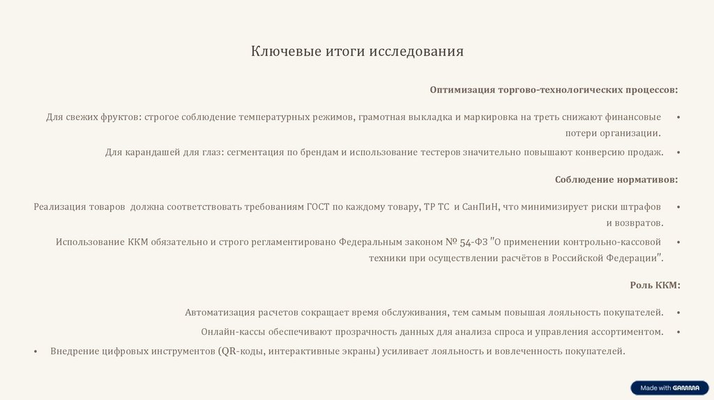 Ключевые итоги исследованияОптимизация торгово-технологических процессов: