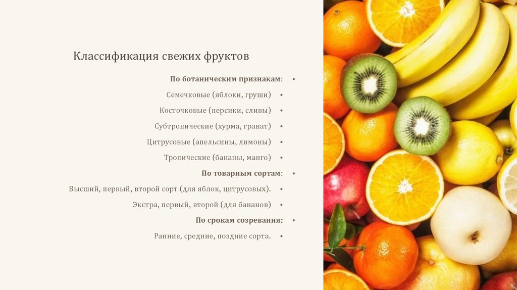 Классификация свежих фруктовПо ботаническим признакам: