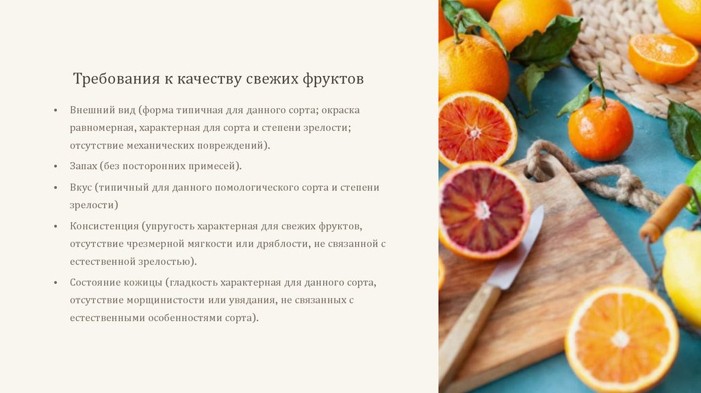 Требования к качеству свежих фруктовВнешний вид (форма типичная для данного сорта; окраска