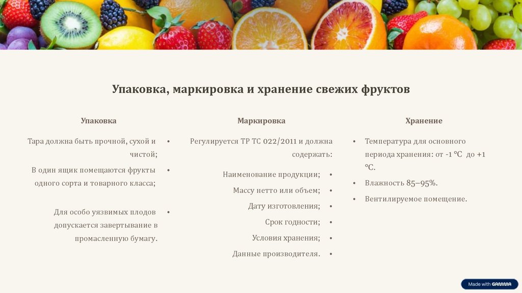 Упаковка, маркировка и хранение свежих фруктовУпаковка