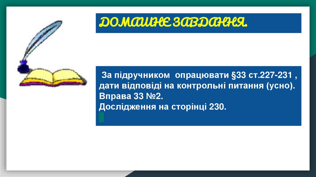ДОМАШНЄ ЗАВДАННЯ.За підручником опрацювати §33 ст.227-231 ,