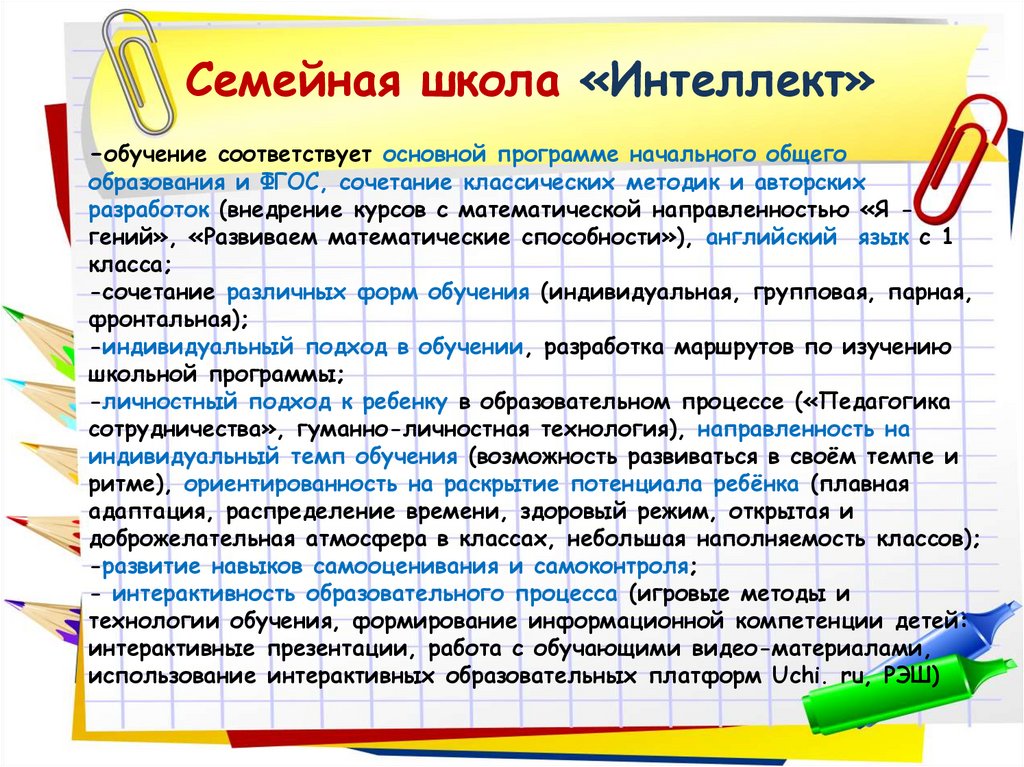 Семейная школа «Интеллект»-обучение соответствует основной программе начального общего