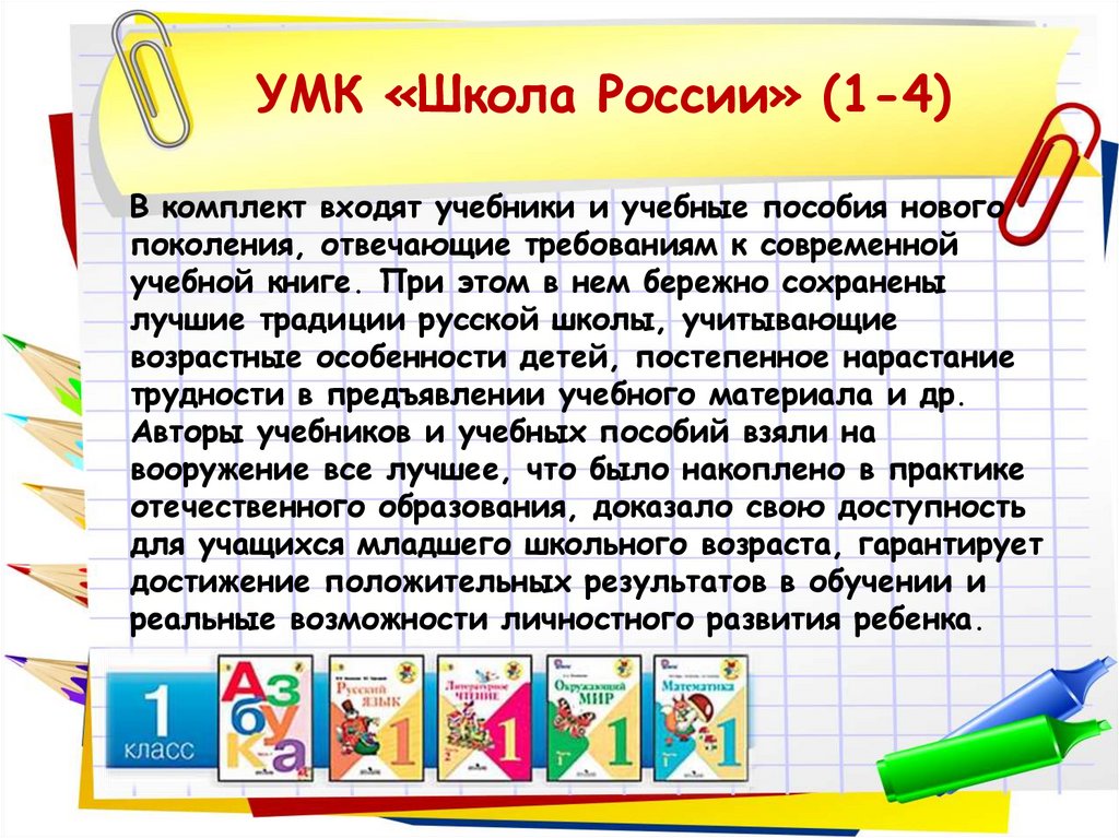 14. -обучение соответствует основной программе начального общего образования и ФГОС, сочетание классических методик и авторских