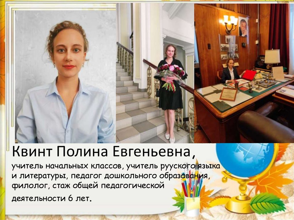 3. Квинт Полина Евгеньевна, учитель начальных классов, учитель рууского языка и литературы, педагог дошкольного образования,