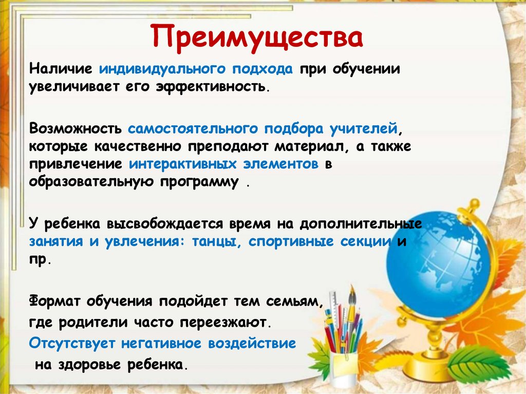 индивидуальный темп обучения (возможность развиваться в своём темпе и