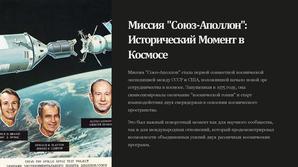 Миссия "Союз-Аполлон": исторический момент в космосе