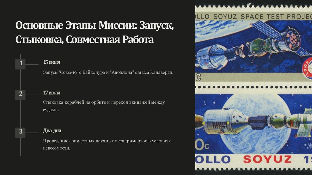 Основные Этапы Миссии: Запуск,Стыковка, Совместная Работа