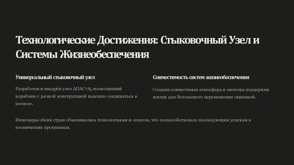 Технологические Достижения: Стыковочный Узел иСистемы Жизнеобеспечения