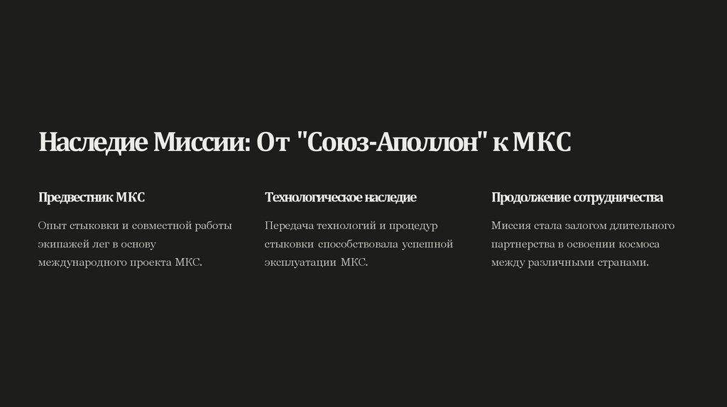 Наследие Миссии: От "Союз-Аполлон" к МКСПредвестник МКС