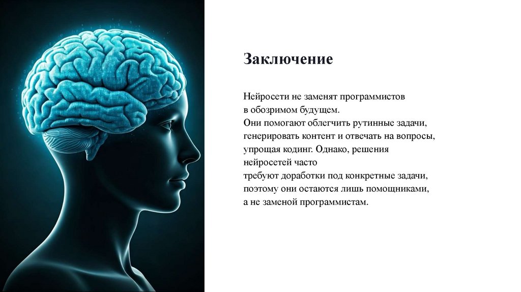 ЗаключениеНейросети не заменят программистов