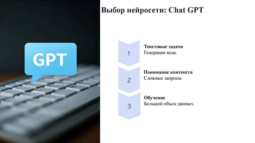 Выбор нейросети: Chat GPTТекстовые задачи