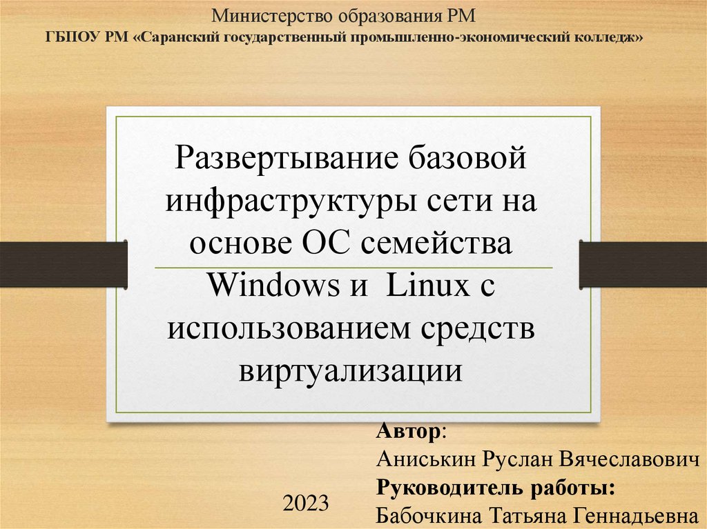 Развертывание базовой инфраструктуры сети на основе ОС семейства Windows и Linux с использованием средств виртуализации