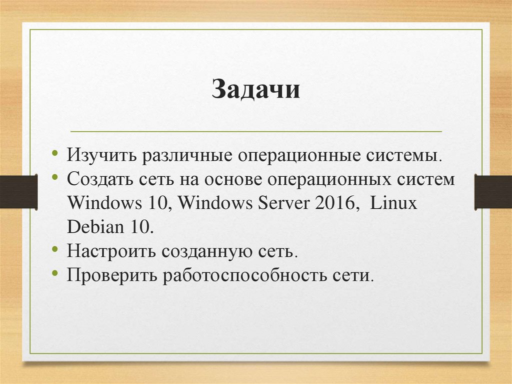 • Изучить различные операционные системы.• Создать сеть на основе операционных систем