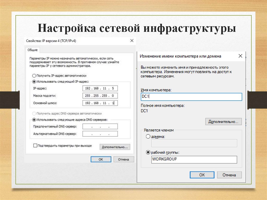 настроить базовую инфраструктуру сети на основеоперационных систем Windows Server 2016, Windows 10,