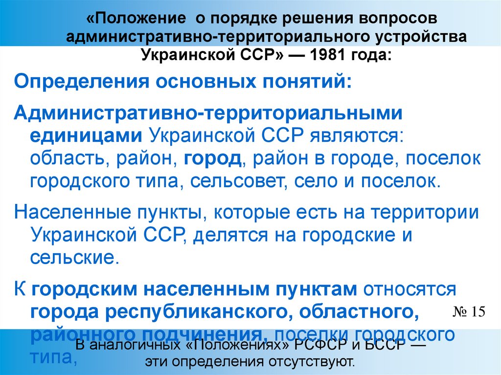 Примечание: Положение в УССР было утверждено на два месяца ранее,