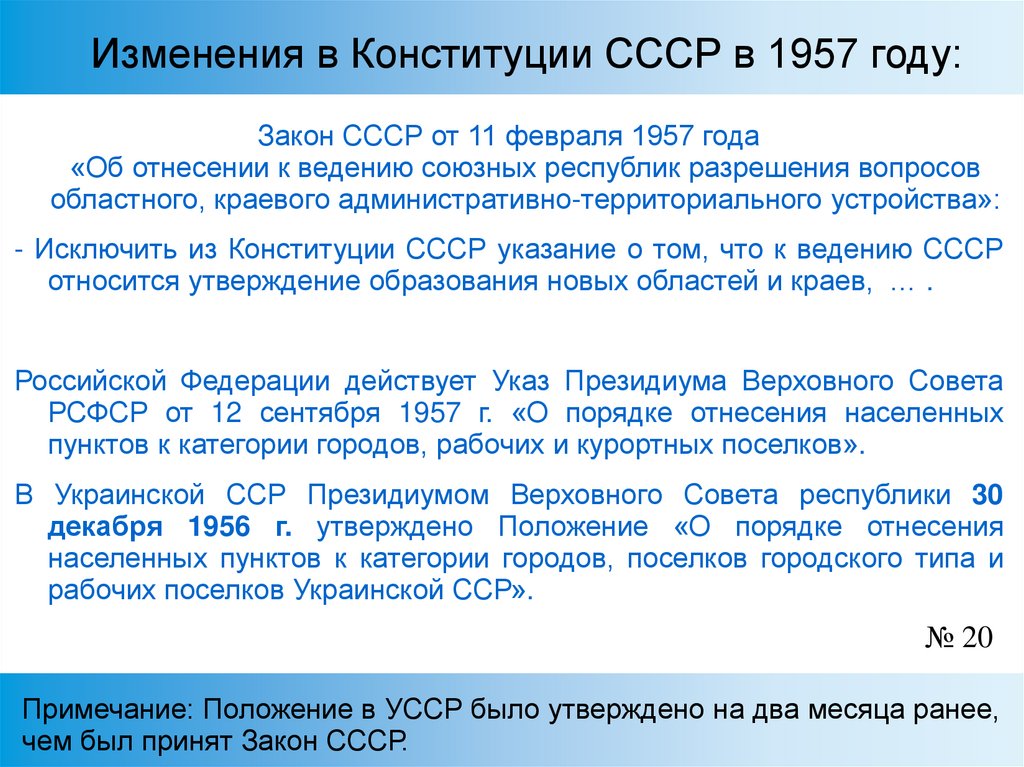 Изменения в Конституции СССР в 1957 году:Закон СССР от 11 февраля 1957 года