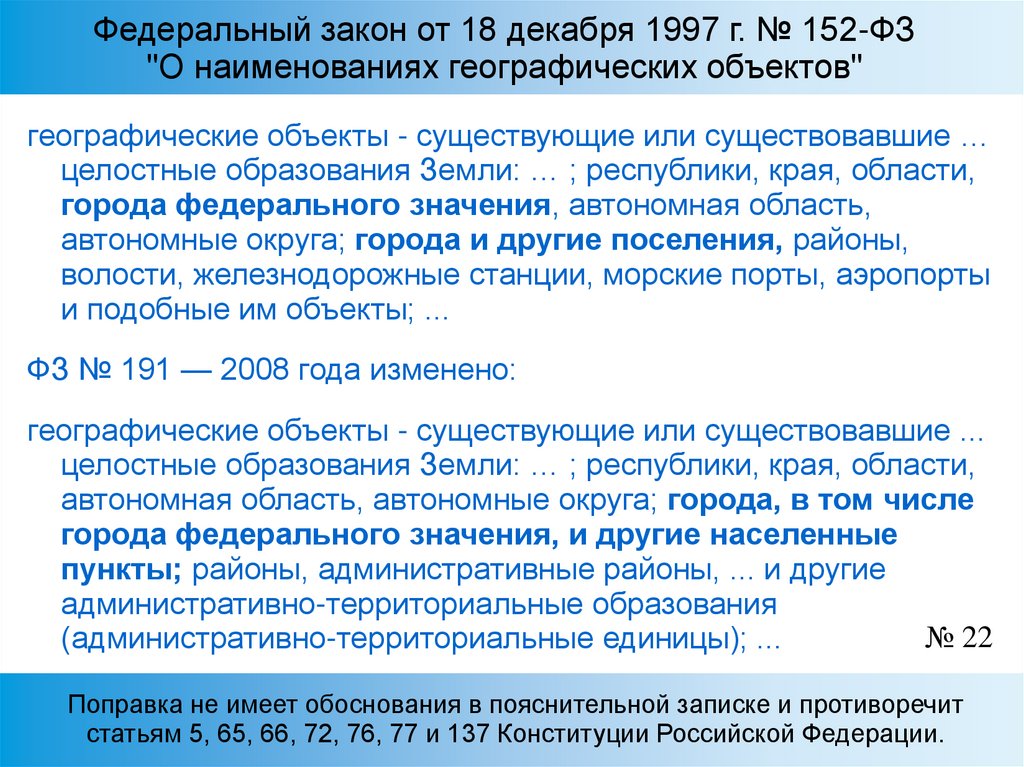 Федеральный закон от 18 декабря 1997 г. № 152-ФЗ"О наименованиях географических объектов"