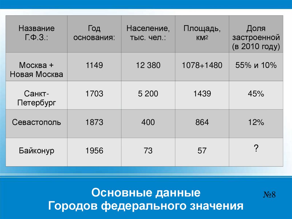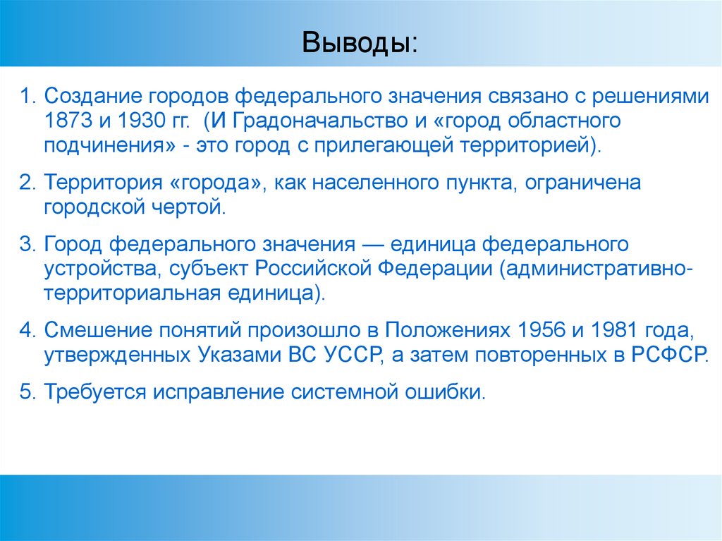 О статусе и территориальном устройстве городов федерального значения, и их отражении в статистике
