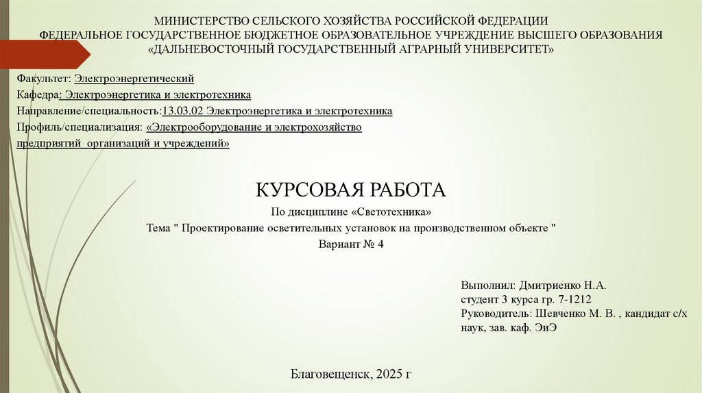 «ДАЛЬНЕВОСТОЧНЫЙ ГОСУДАРСТВЕННЫЙ АГРАРНЫЙ УНИВЕРСИТЕТ»