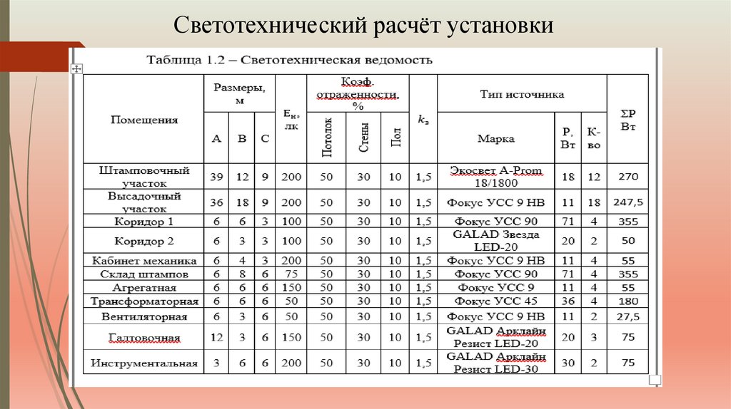 Проектирование осветительных установок на производственном объекте. Вариант № 4