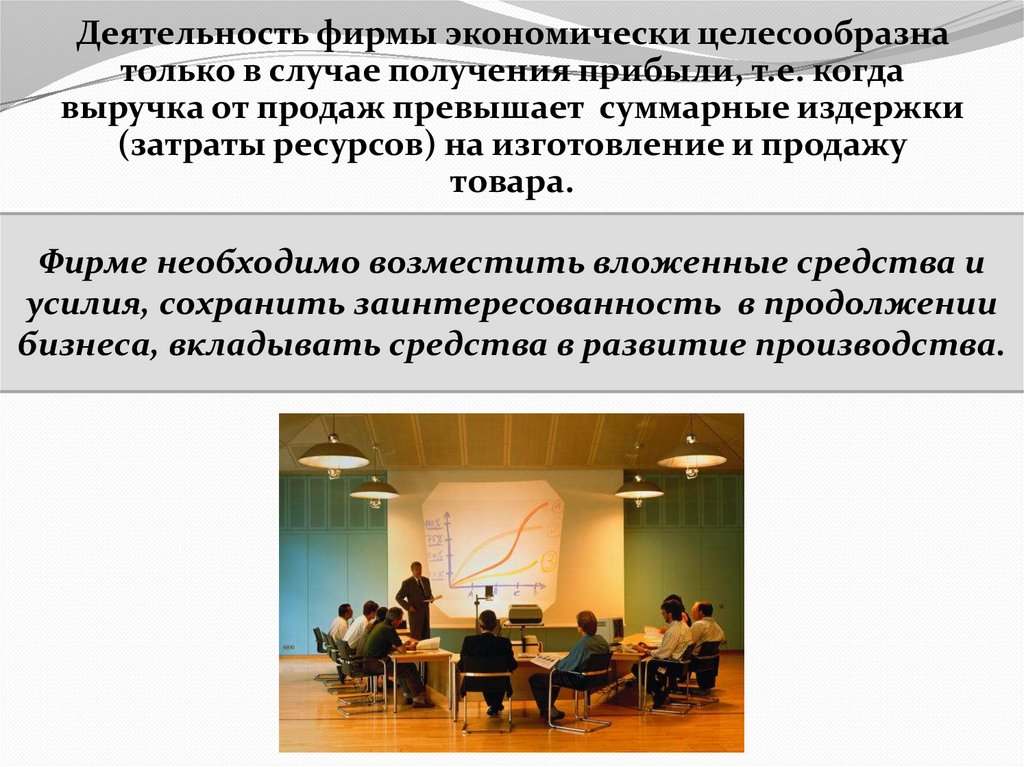 Деятельность фирмы экономически целесообразнатолько в случае получения прибыли, т.е. когда