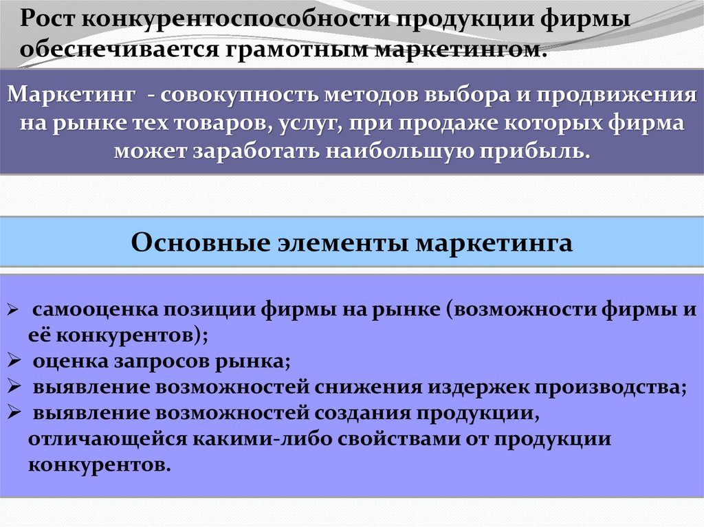 Рост конкурентоспособности продукции фирмыобеспечивается грамотным маркетингом.