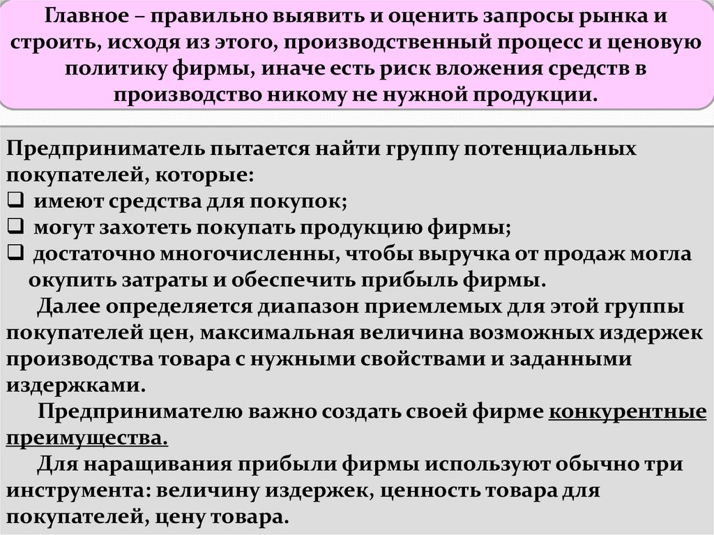 Главное – правильно выявить и оценить запросы рынка истроить, исходя из этого, производственный процесс и ценовую