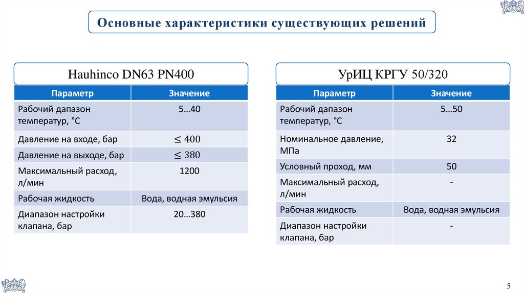 Основные характеристики существующих решенийHauhinco DN63 PN400