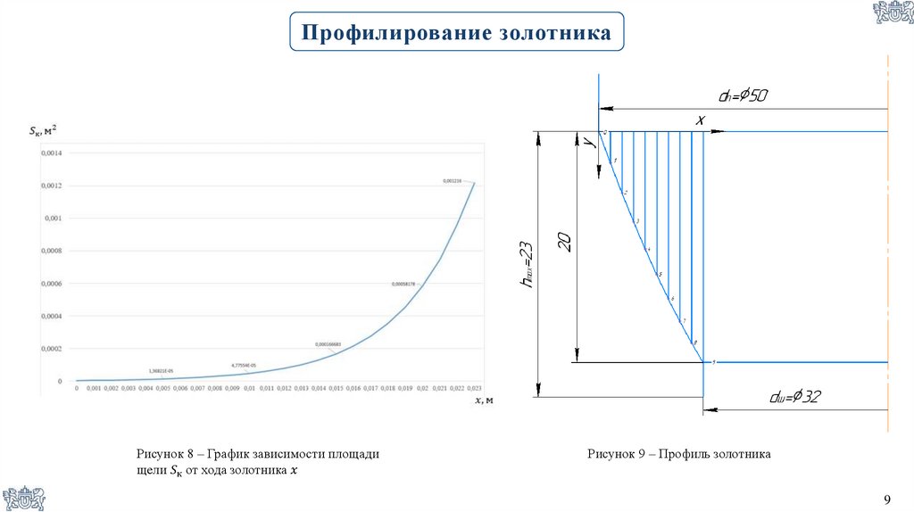 Профилирование золотникаРисунок 8 – График зависимости площади