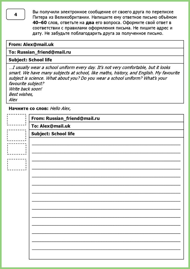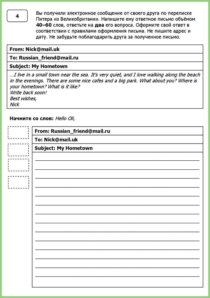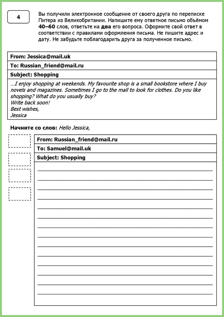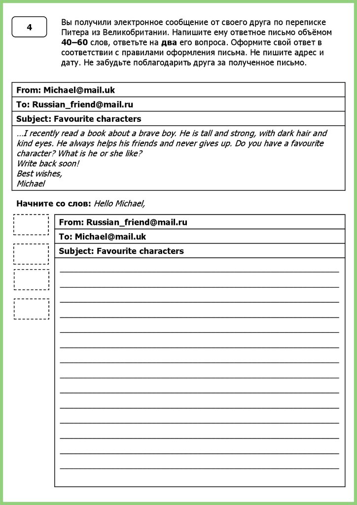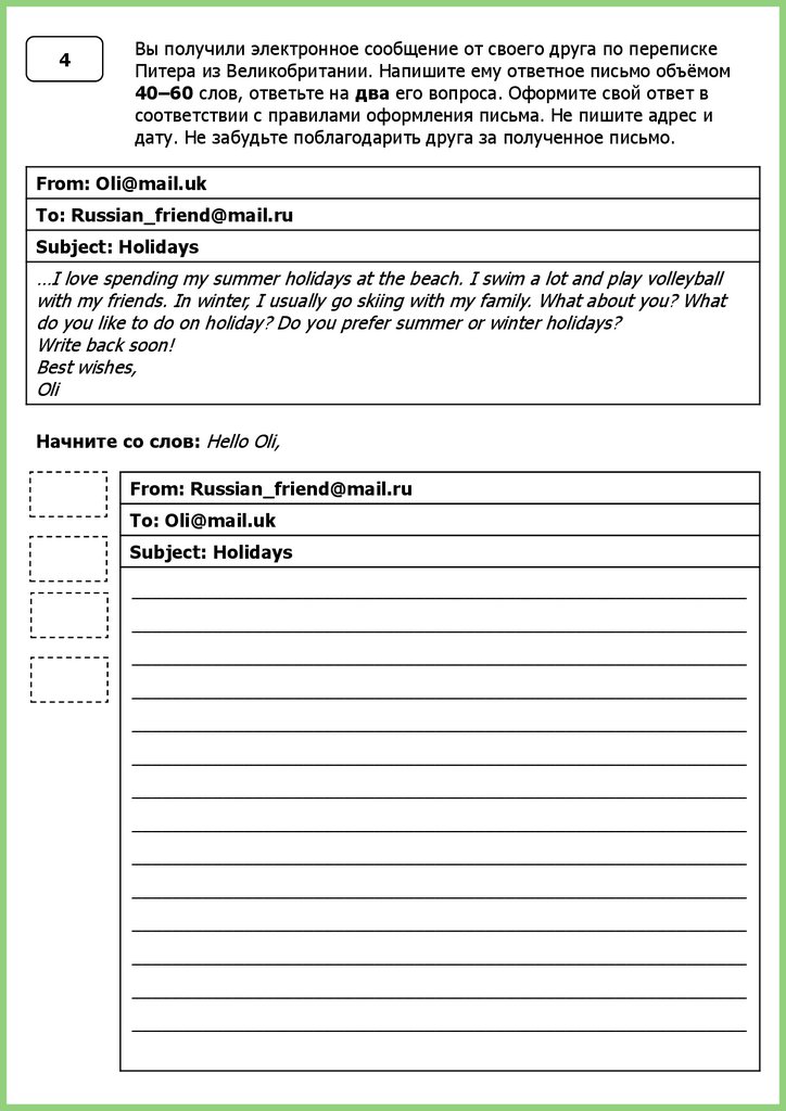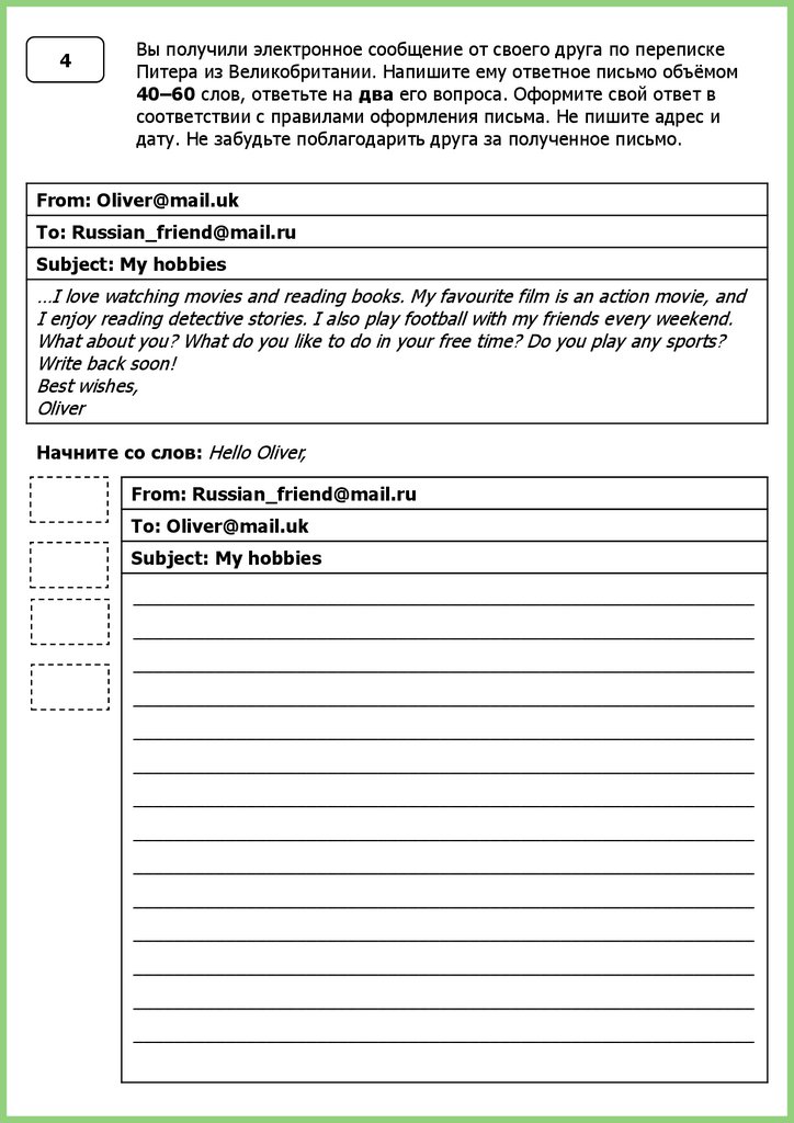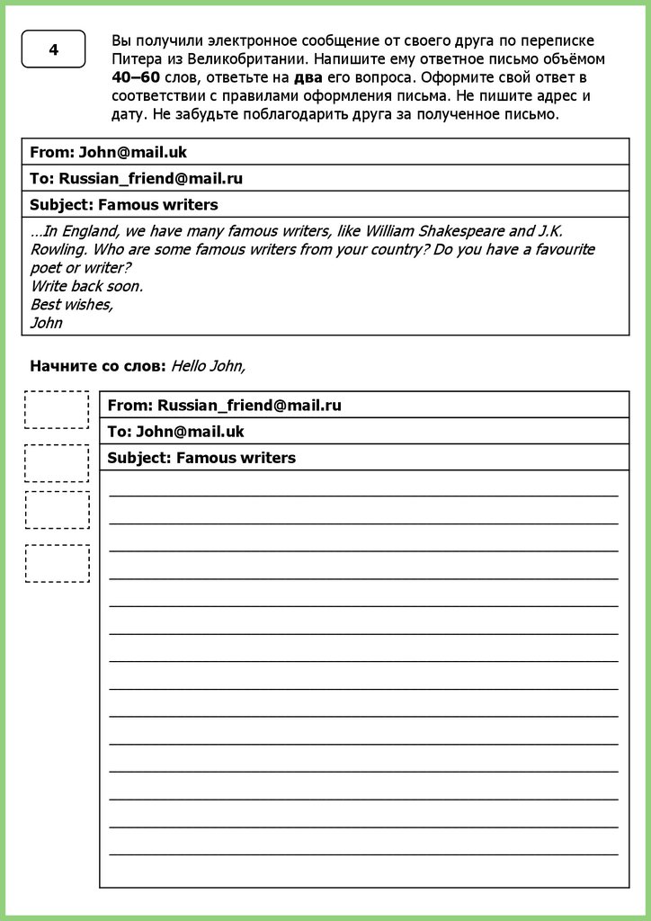 3. Если объём письма менее 36 слов, то ответ на задание оценивается 0 баллов